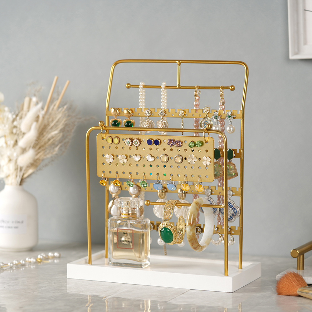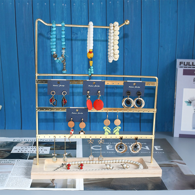 Cross-Border New Product Six-Layer Bracelet and Earrings Display Stand Desktop Iron Gold Paint Earrings Jewelry Jewelry Stand