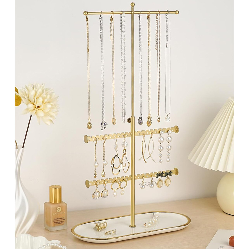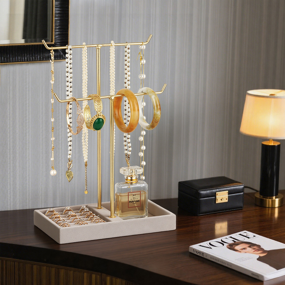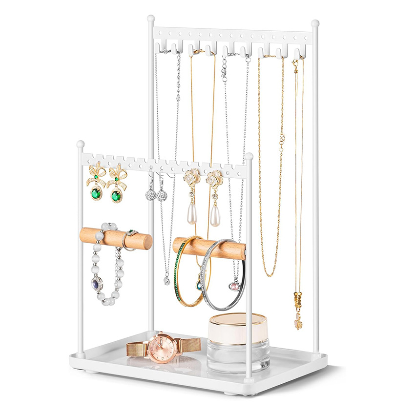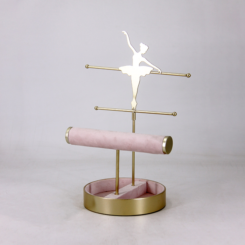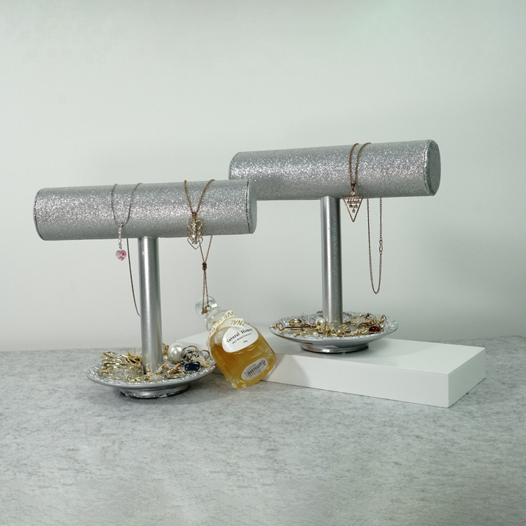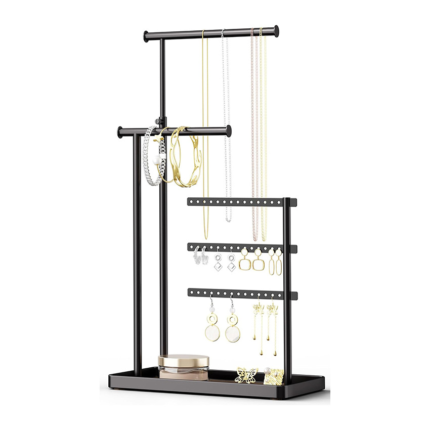 Cross-Border New Product Four-Layer T-Bar Shaped Bracelet Necklace Display Stand Iron Piece with Base Jewelry Storage Display Stand