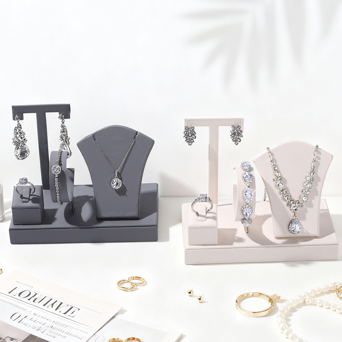 Cross-Border Spot Combination Set Jewelry Rack Leather Jewelry Tray Jewelry Store Ring Bracelet Necklace Earrings Multi-Purpose Rack