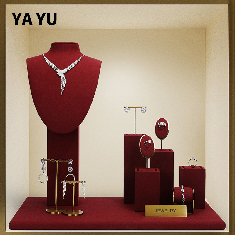 Yayu wine red Microfiber Jewelry Store Window Shop Jewelry Display Props Ring Bracelet Necklace Jewelry Display Stand