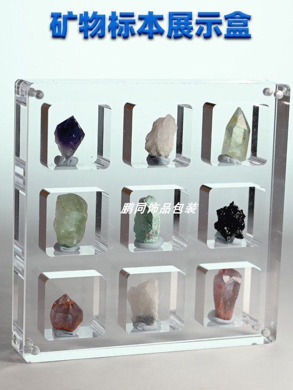 New Acrylic Cat Mineral Display Stand Crystal Mineral Display Box Stone Mineral Standard Gemstone Nine-Square Grid Mineral Display