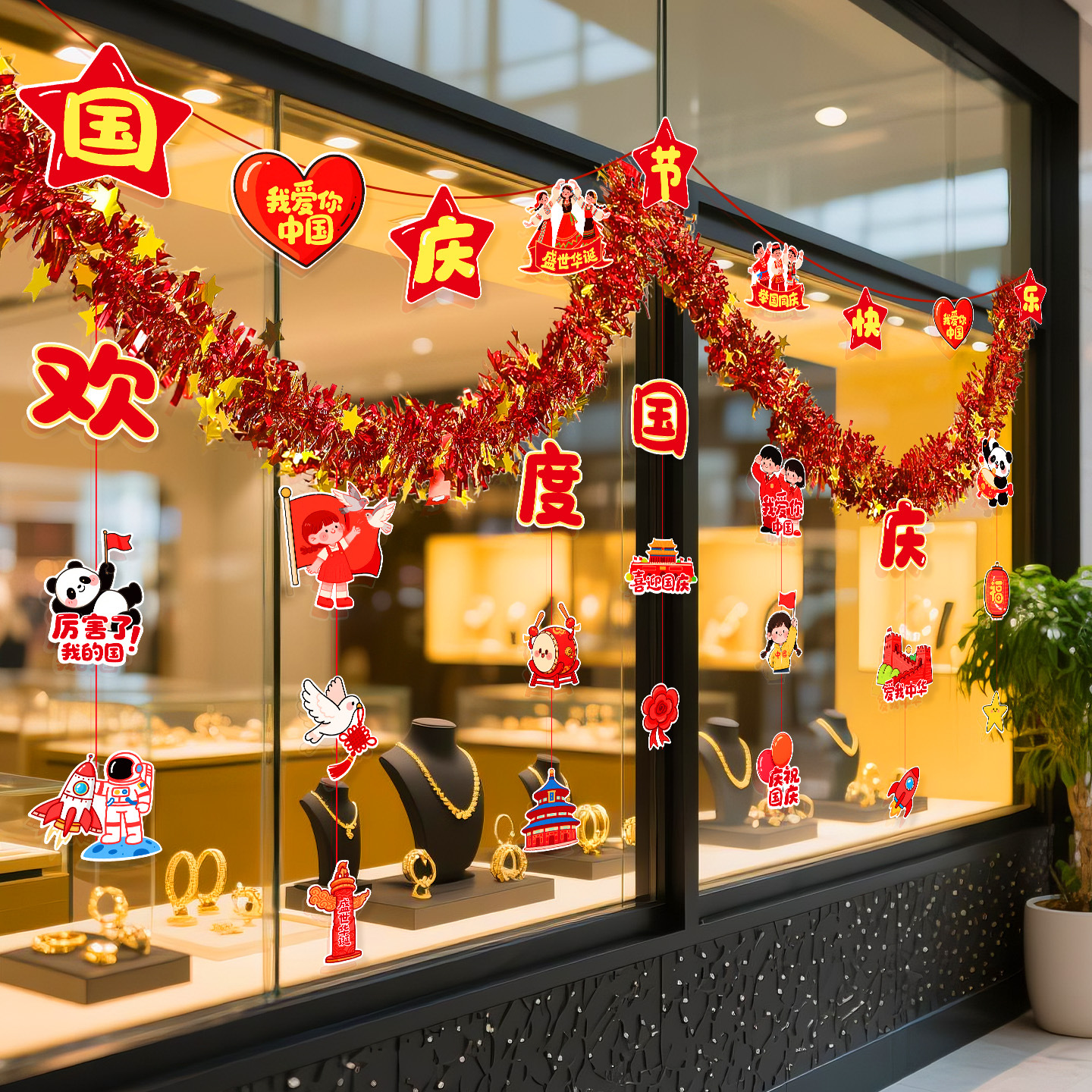 Mid-Autumn Festival National Day Flag Pull Atmosphere Decoration Shopping Mall Jewelry Store Festival Scene Decoration Decoration Hanging Flag Pull Flowers