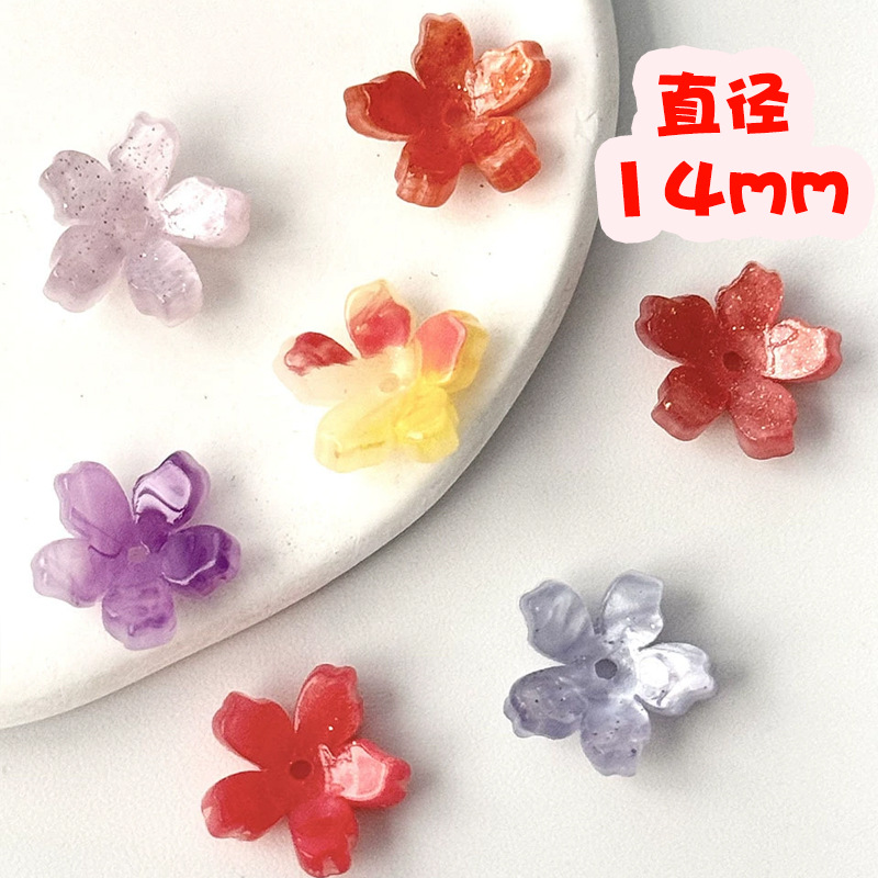 New Acetic Acid Accessories Bracelet Beaded Gradient Color 14mm Flower DIY Handmade Antique Hairpin Headwear Wholesale