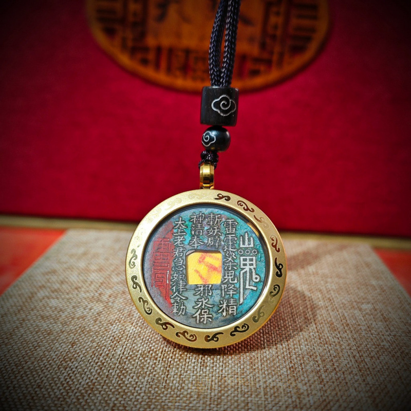Supply of Shanggui Flower Pendant with Kaiyuan Tongbao Old Copper Coins, Chinese Style Titanium Steel Gawu Box Protective Shell Tai Sui Talisman