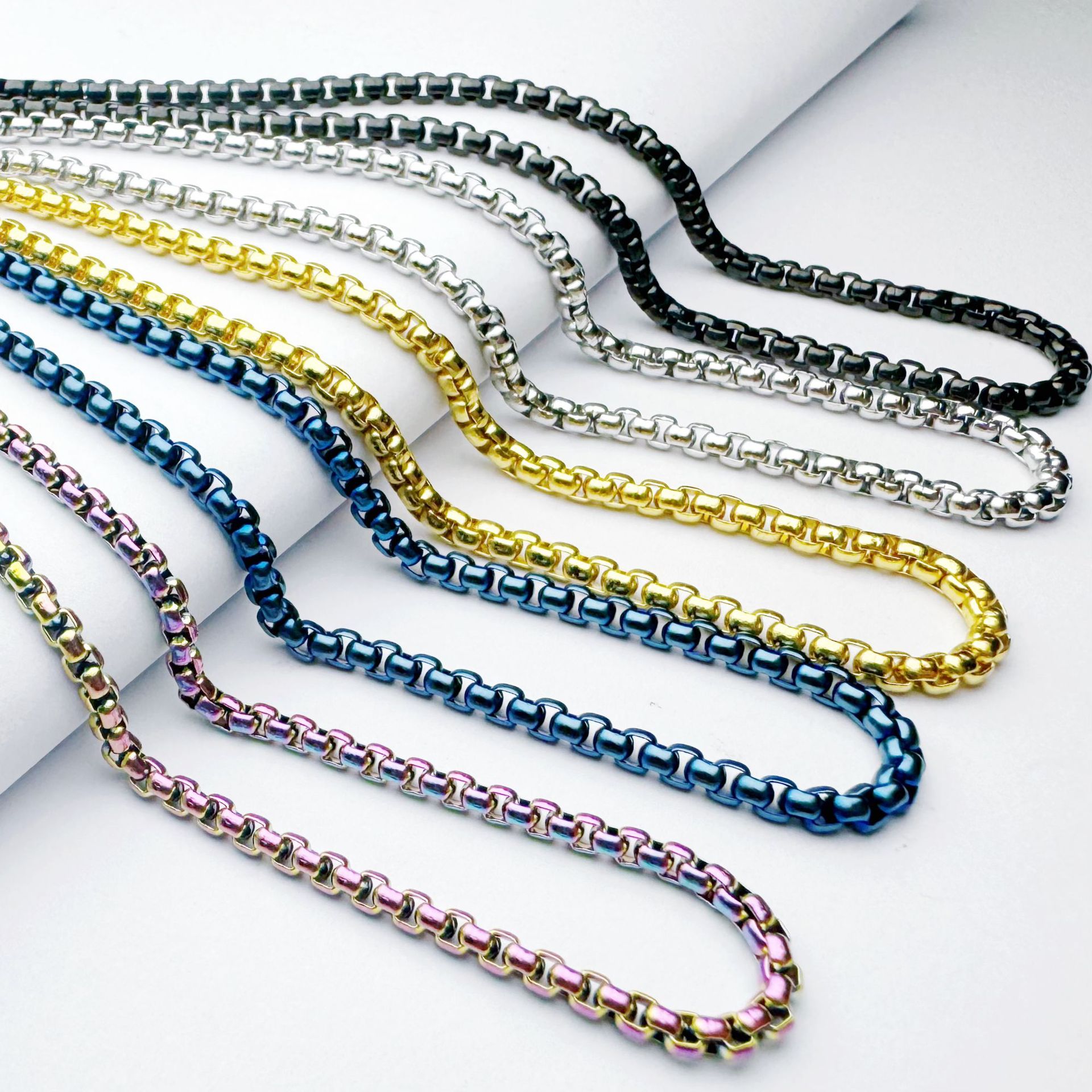 New New Hot Cross-border Jewelry Square Pearl Chain Necklace Titanium Steel Square Pearl Chain Stainless Steel Chain Wholesale
