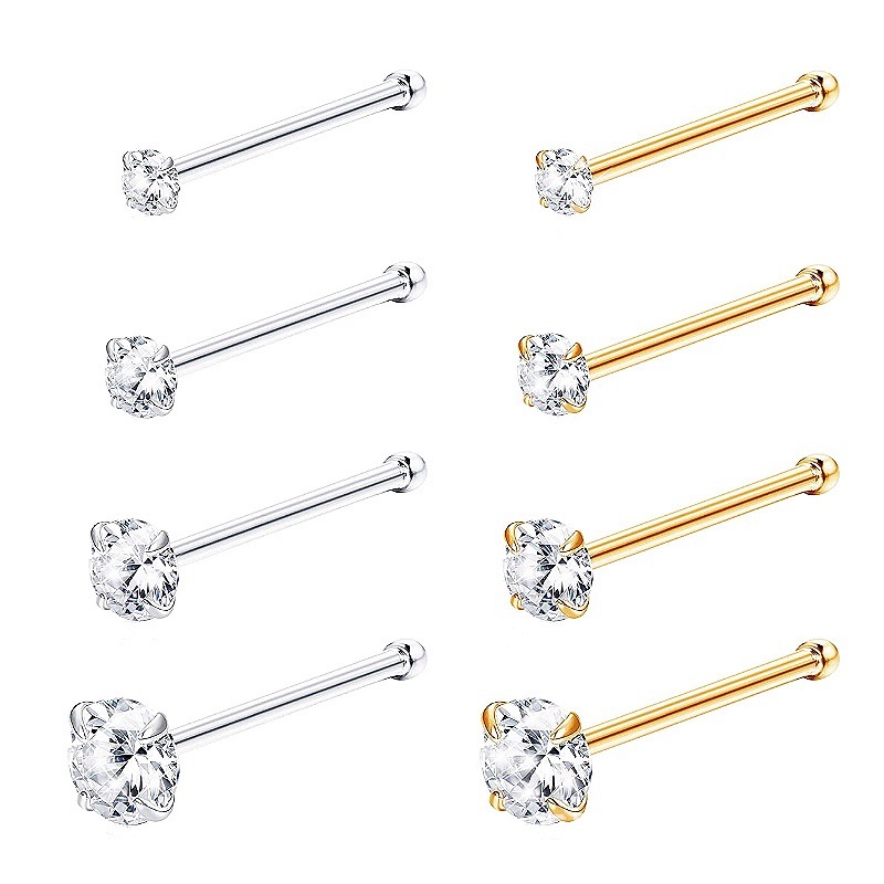 European and American ebay AliExpress New 925 sterling silver 8 perforated puncture set 3A zircon nose nail Amazon hot