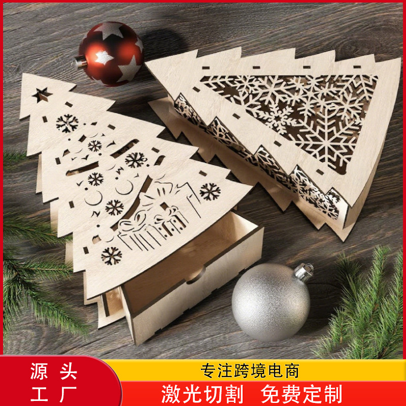 Cross-Border New Product Christmas Gift Box Decorative Box Wooden New Year Gift Box Laser Cutting Jewelry Box Wooden Craft