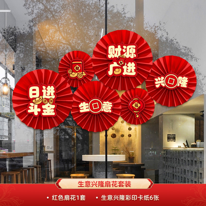 Store Opening Auspicious Paper Fan Flower Mall Jewelry Store Window Atmosphere Decoration Background Wall Event Atmosphere Decorations