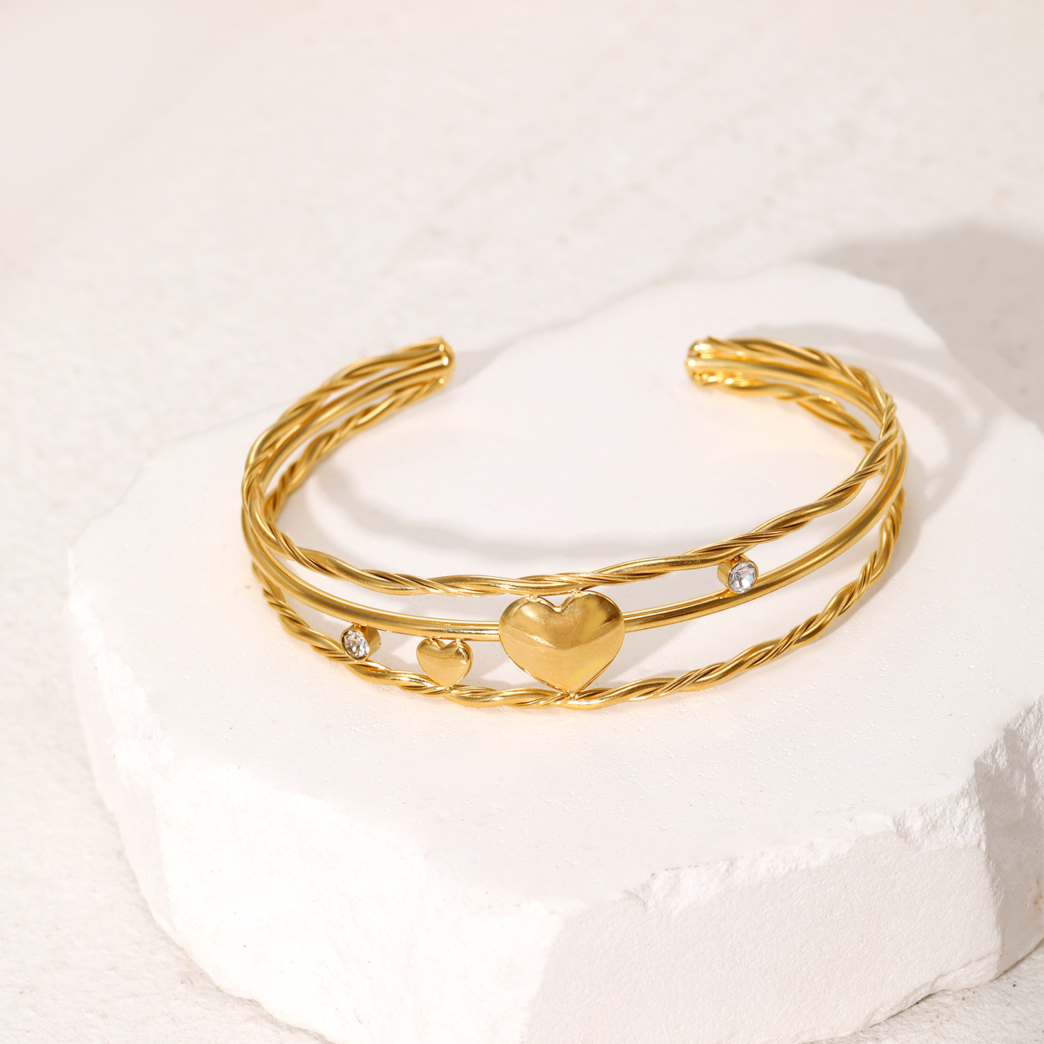 Cross-border new fashion creative Joker ladies three-layer love shape opening stainless steel gold-plated bracelet wholesale