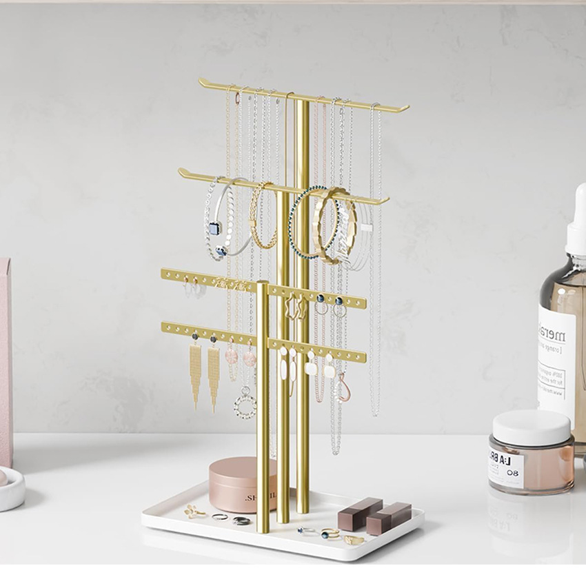 Cross-Border New Product 4-Layer Bracelet Display Stand T-Bar Shape Gold Iron Piece with Base Jewelry Storage Display Stand