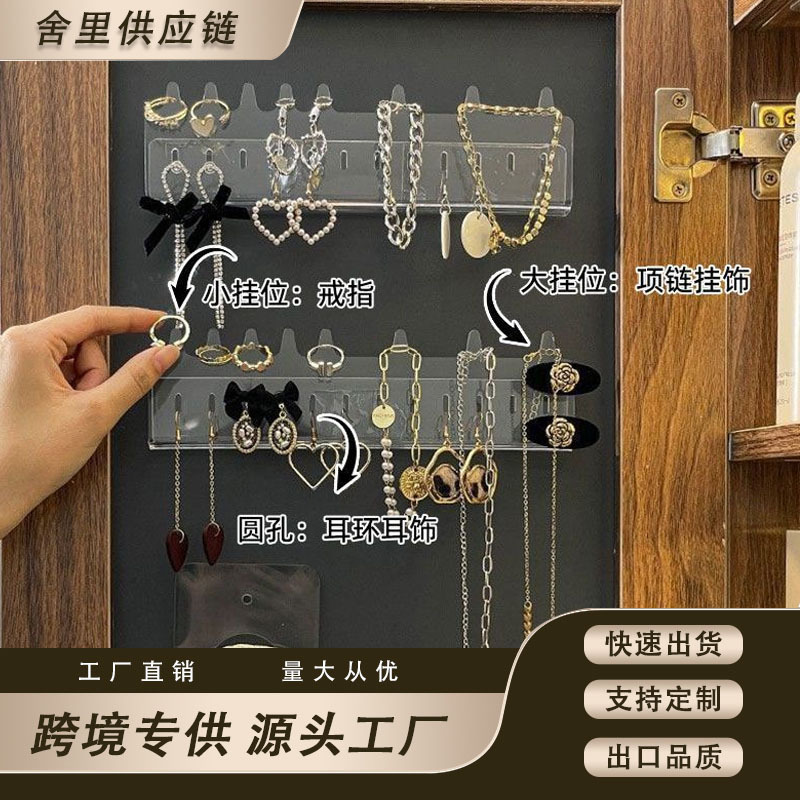 Jewelry Storage Wall-Mounted Bathroom Earring Storage Hair Accessories Necklace Ultra-Thin Storage Cabinet Behind the Door Light Luxury Ins Style L