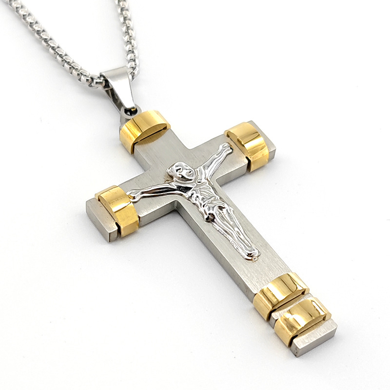 Titanium Steel Men's Multi-Layer Combination Retro Cross Pendant Cross-Border European and American E-Commerce Jewelry Necklace in Stock Light Luxury