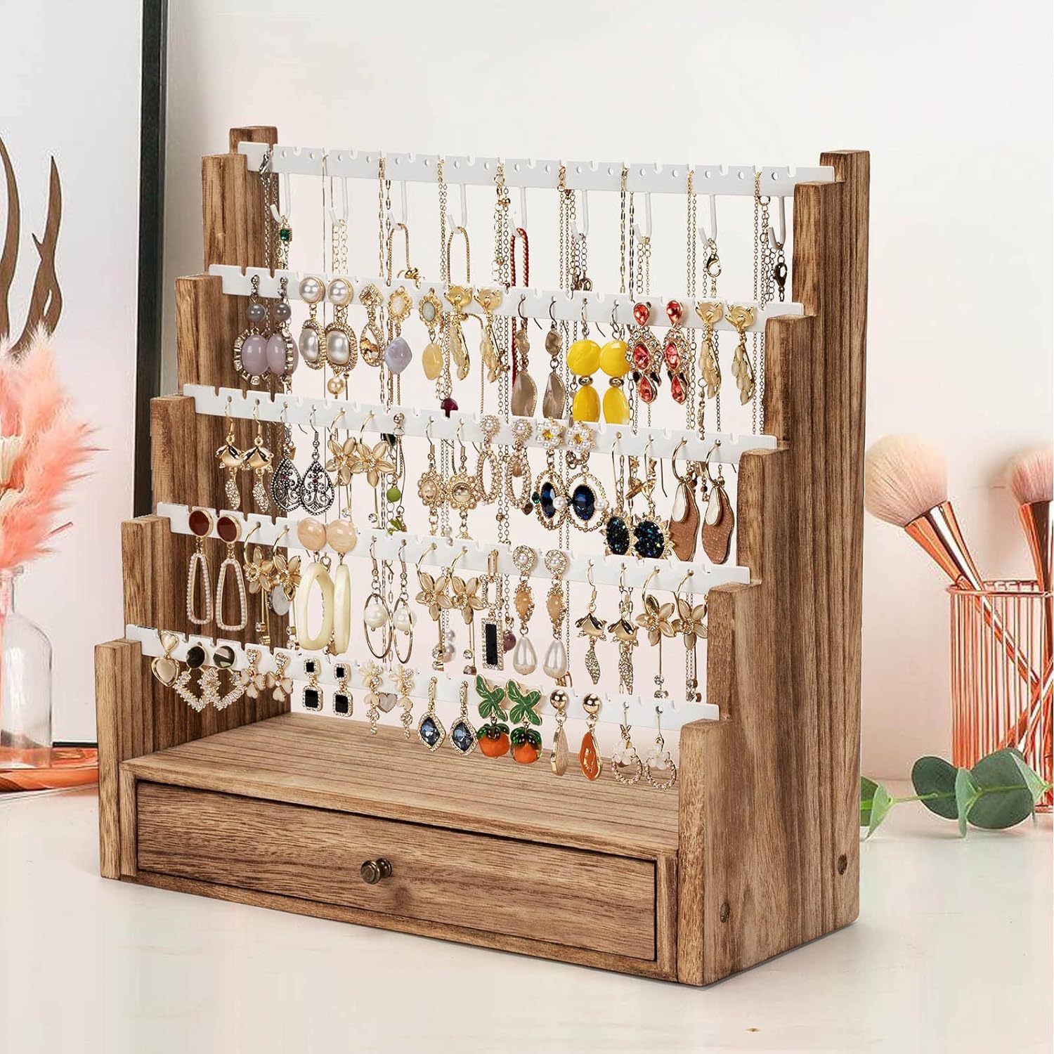 Wooden desktop storage box home accessories multi-layer drawer organizing Rack store earrings jewelry display rack