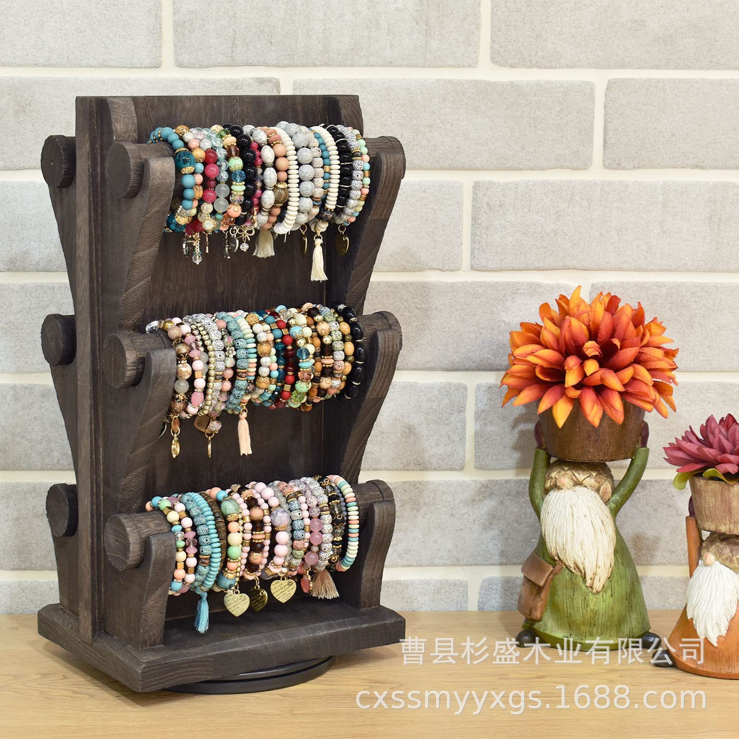 Wooden Storage Rack Wooden Jewelry Bracelet Display Stand Double-Sided Rotating Beaded Handstring Multi-Layer Storage Rack Store
