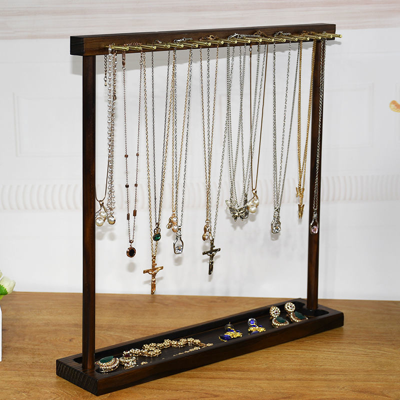 Jewelry Store Desktop Ornaments Wooden Hanging Jewelry Storage Rack Earrings Necklace Jewelry Walnut Storage Rack