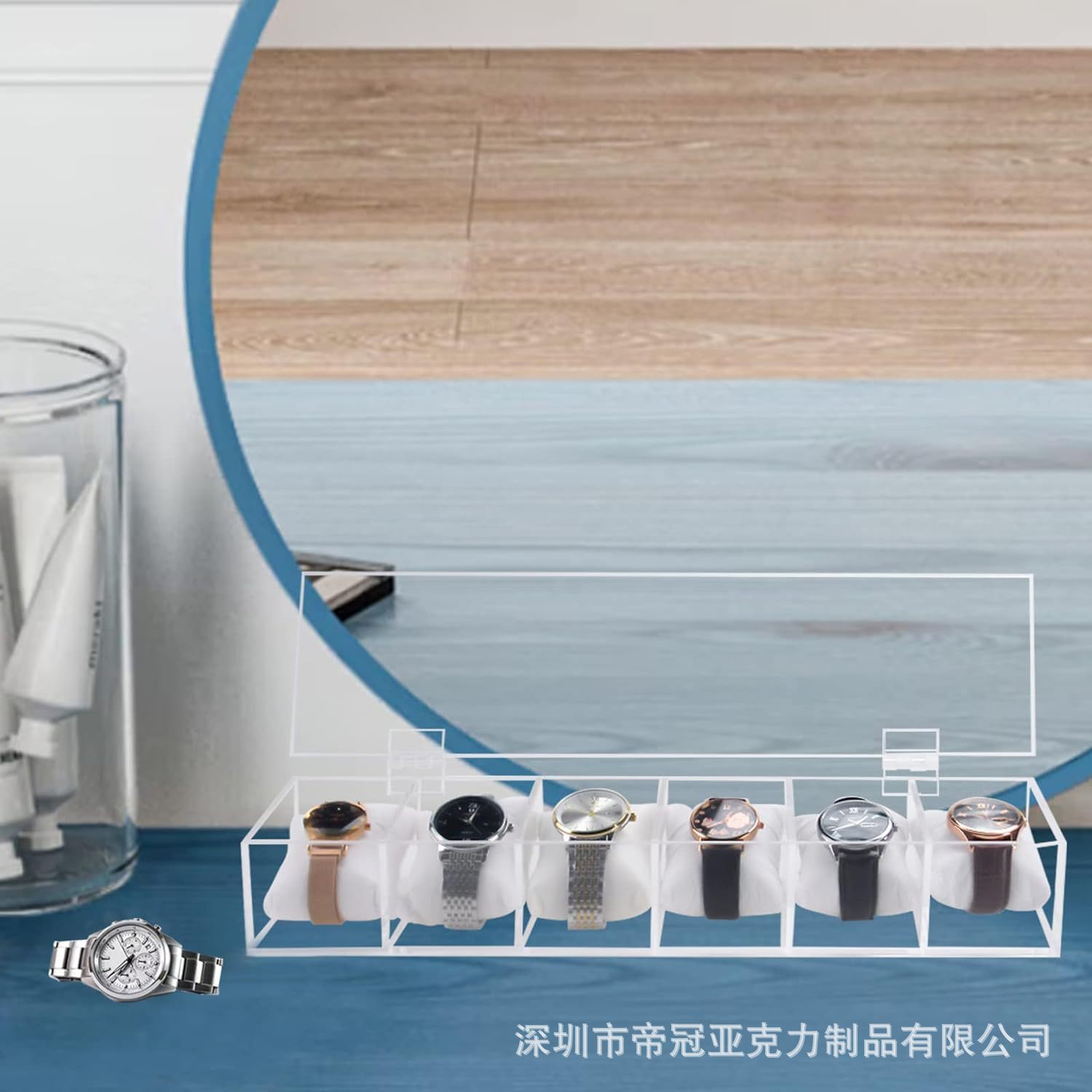 Watch Dust-proof Storage Box 6 Slots Acrylic Watch Holder Jewelry Necklace Display Storage Box Store Show