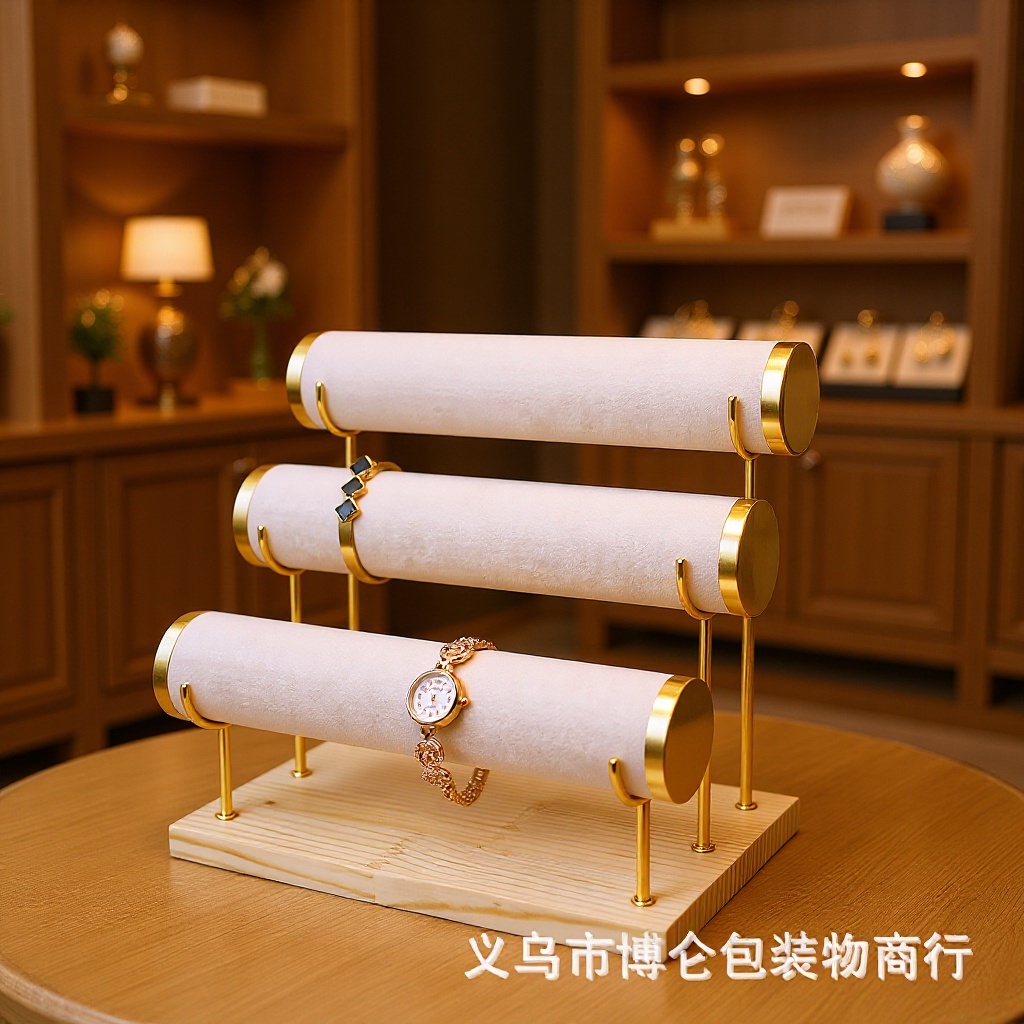 Wooden Base Jewelry Rack Jewelry Bracelet Display Rack Three-Layer Bracelet Display Stand Store Ornaments Detachable Jewelry Rack