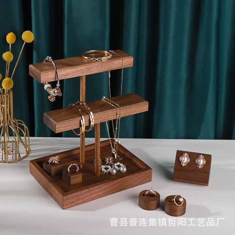 Walnut Double-layer Bracelet Bracelet Rack Store Counter Jewelry Store Jewelry Display Props Jewelry Solid Wood Display Rack