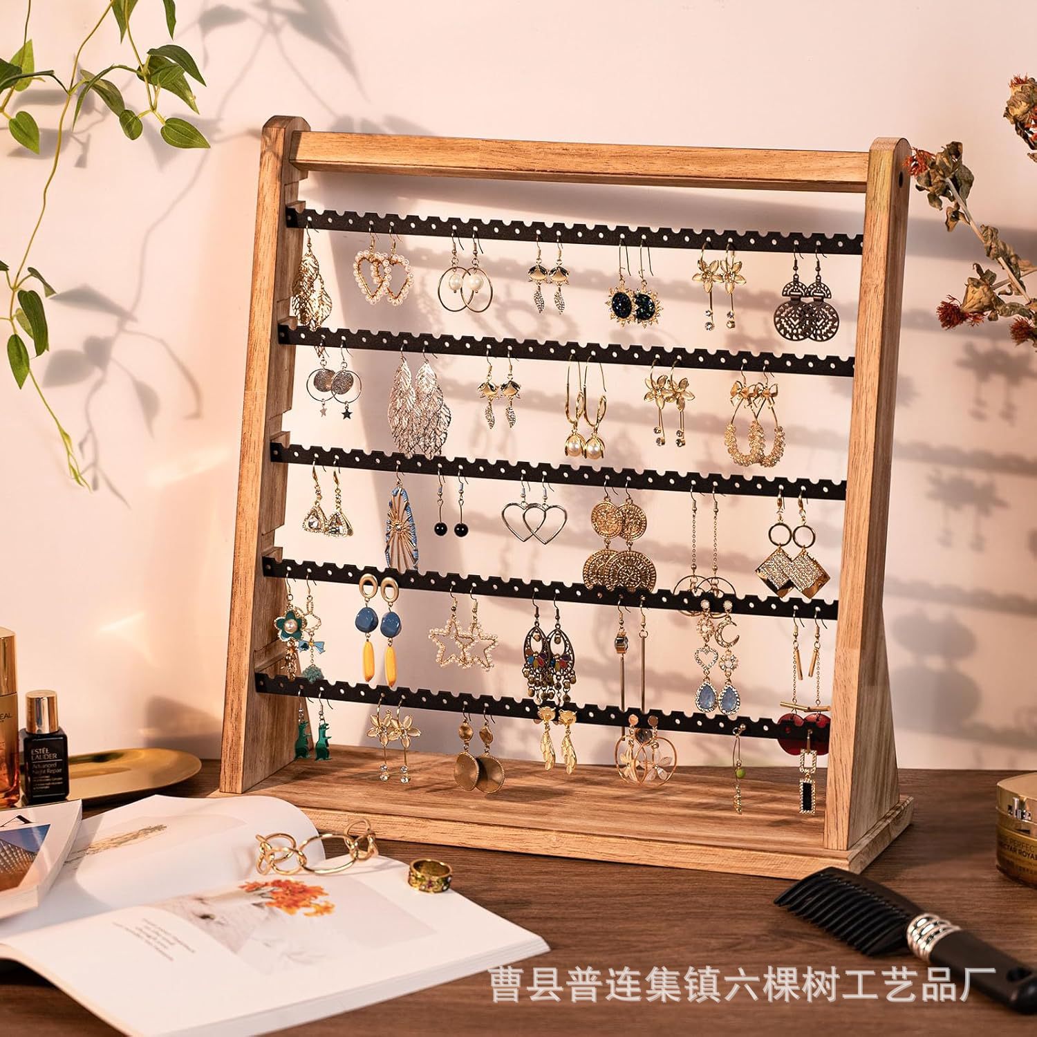 Wooden Jewelry Rack Table Decoration Store Jewelry Jewelry Display Rack Multi-Layer Earring Card Storage Solid Wood Display Rack