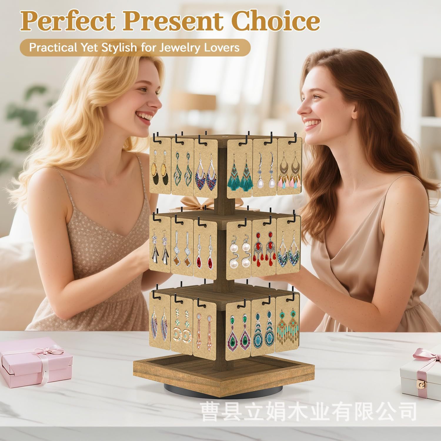 Wooden Jewelry Rack Store Retail Jewelry Tower Multi-layer Rotating Earring Card Rack Card Rack Handmade Solid Wood Display Rack