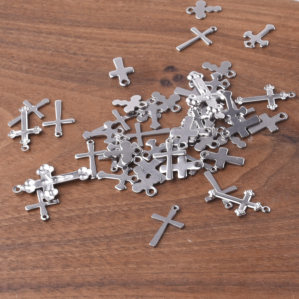 Factory in stock simple Korean style stainless steel cross pendant necklace earrings DIY jewelry accessories wholesale