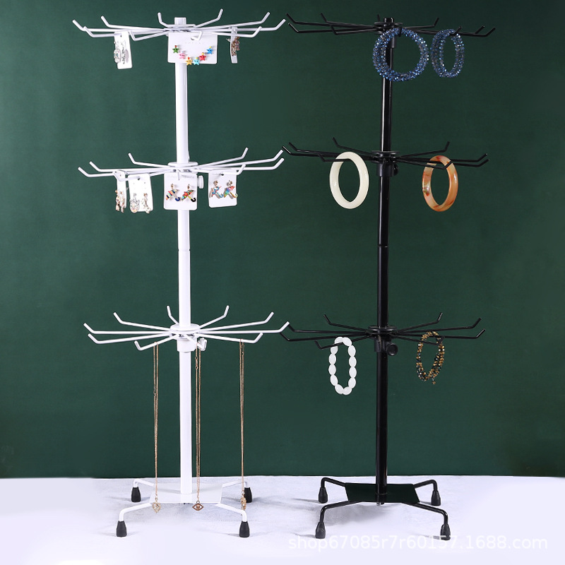 Three-Layer Rotatable Display Rack Wholesale Metal Iron Necklace Bracelet Jewelry Jewelry Hanging Rack Store Shelf
