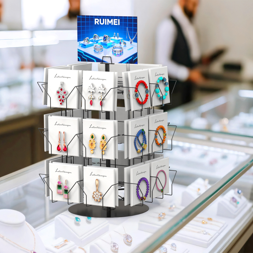 Customized Processing of Iron Four-Sided Countertop Rotating Necklace and Earring Display Stand Greeting Card Business Card Display Stand