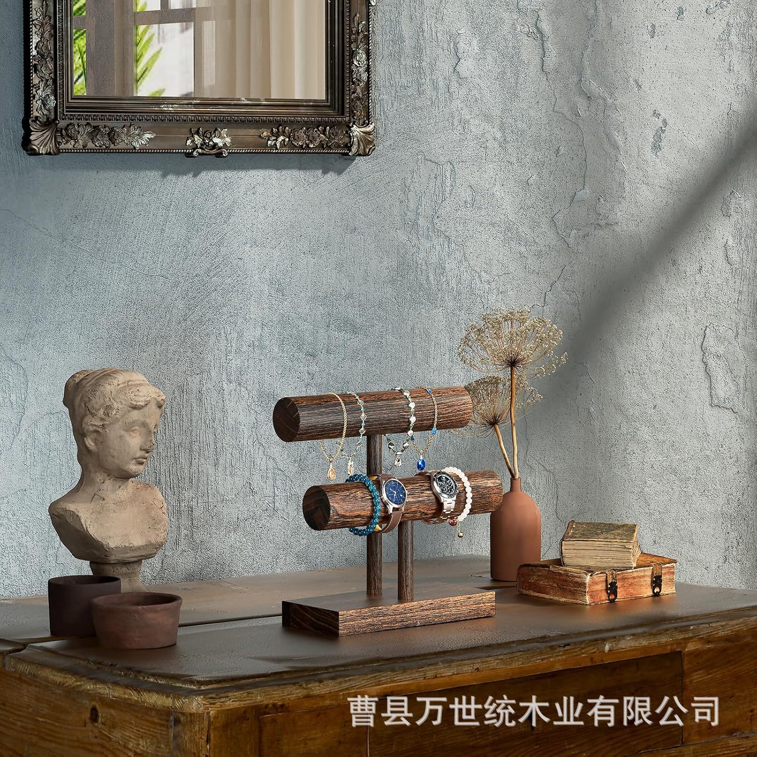 Cross-Border Retro Wooden Jewelry Rack Countertop Bracelet Watch Display Rack Layered Store Jewelry Solid Wood Display Rack
