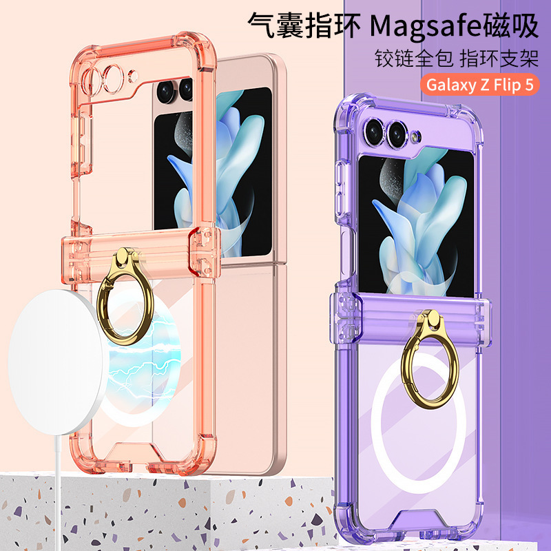 For Samsung ZFlip6/5 mobile phone case 4/3 ring bracket wireless charging Magsafe airbag anti-fall protective cover