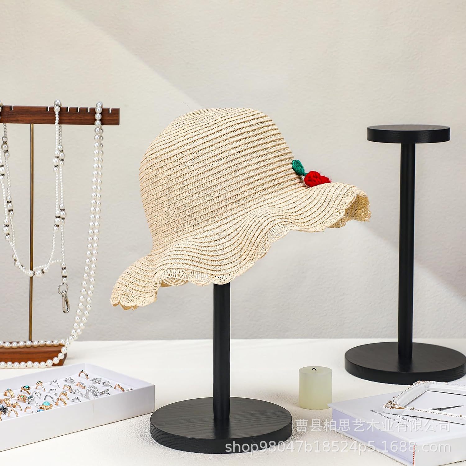 Wooden Hat Display Stand Shop Countertop Vintage Wig Jewelry Holder Helmet Straw Hat Sun Hat Storage Shelf