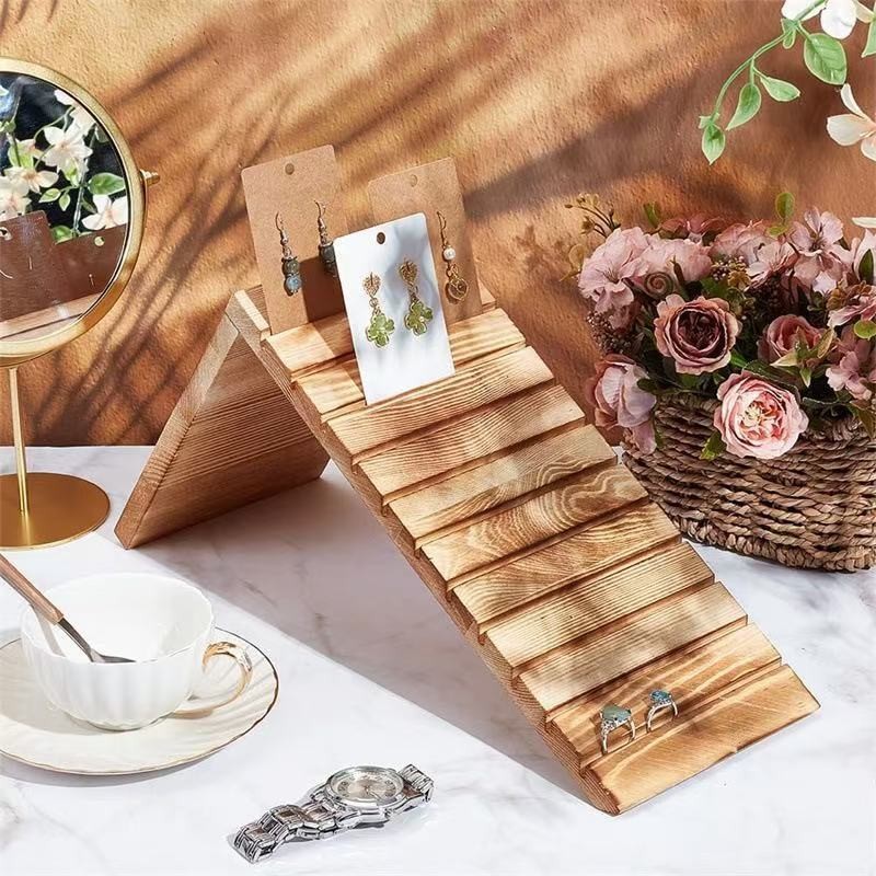 Wooden Jewelry Display Rack Desktop Jewelry Storage Rack Inclined Multi-Layer Store Retail Earrings Ring Display Rack
