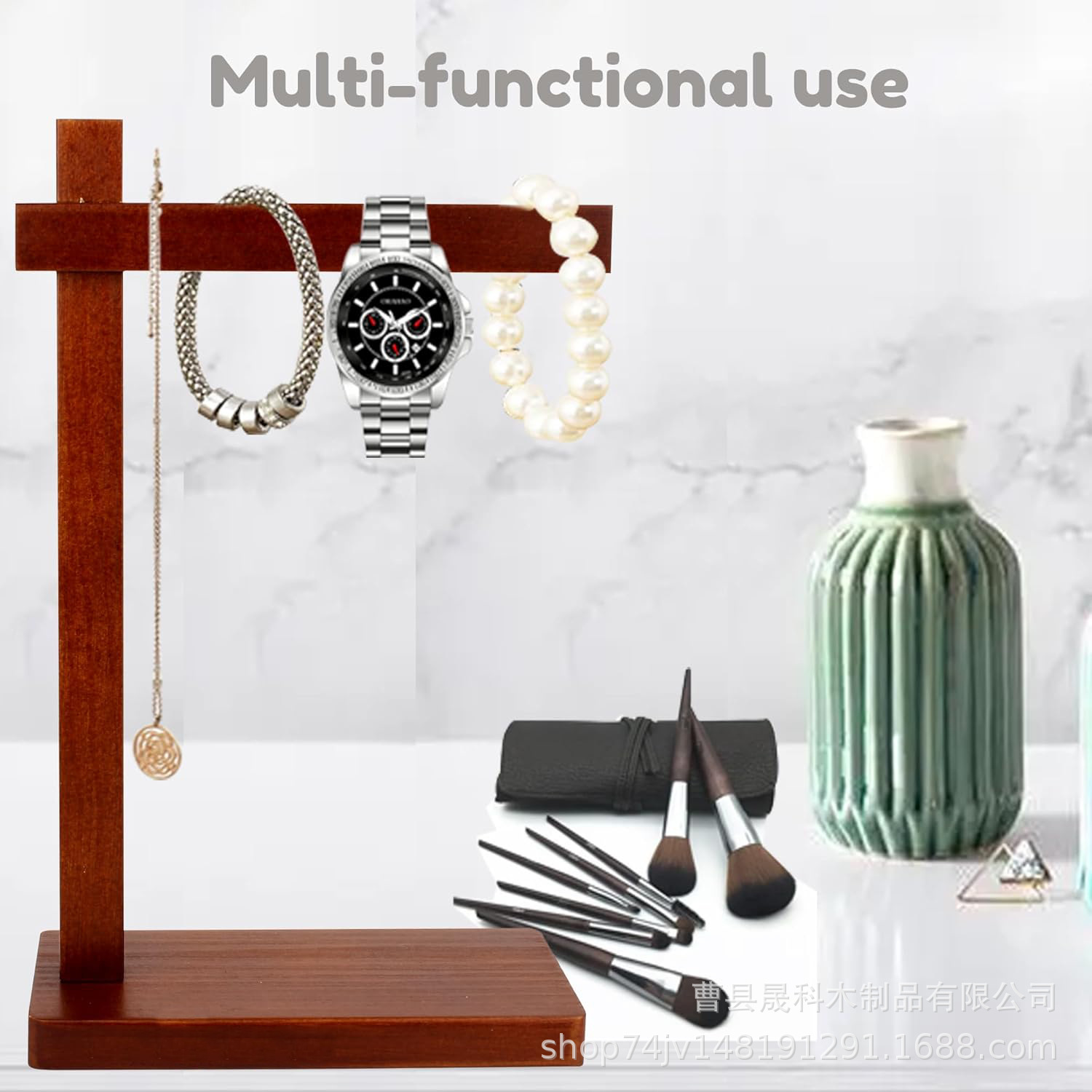 Wooden Jewelry Necklace Storage Rack Dresser Desktop Bracelet Hanging Holder Stand Shop Countertop Watch Display Shelf