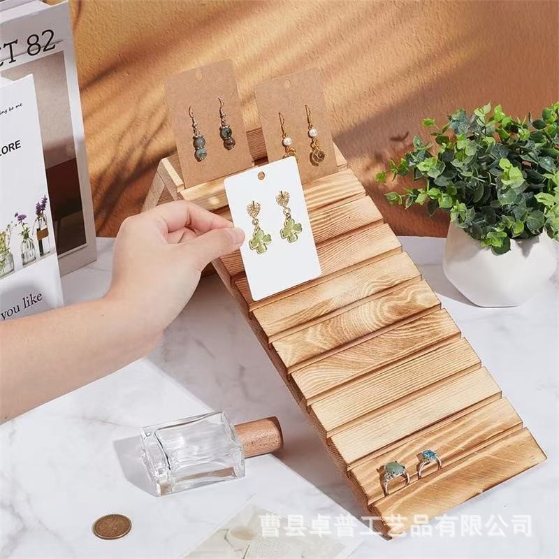 Wooden Jewelry Display Rack Desktop Inclined Jewelry Storage Rack Multi-Layer Earrings Earrings Store Ring Display Rack