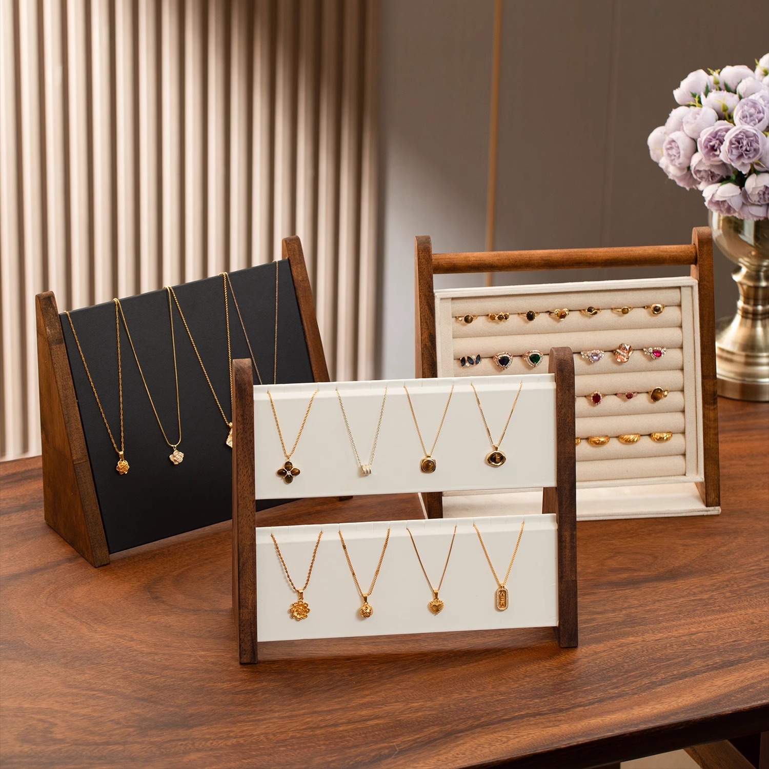 Walnut Wood Grain Jewelry Display Props High-End Wooden Counter Jewelry Ring Necklace Display Stand Vertical