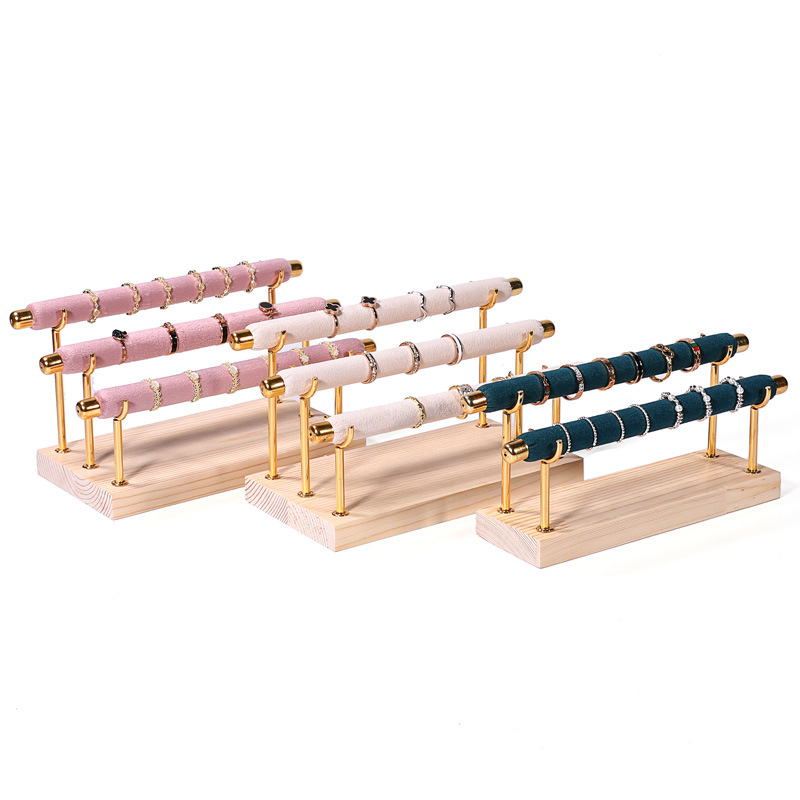 Creative Solid Wood Suede Watch Bracelet Display Rack Hair Ring Bracelet Storage Rack Counter Stepped Jewelry Jewelry Rack