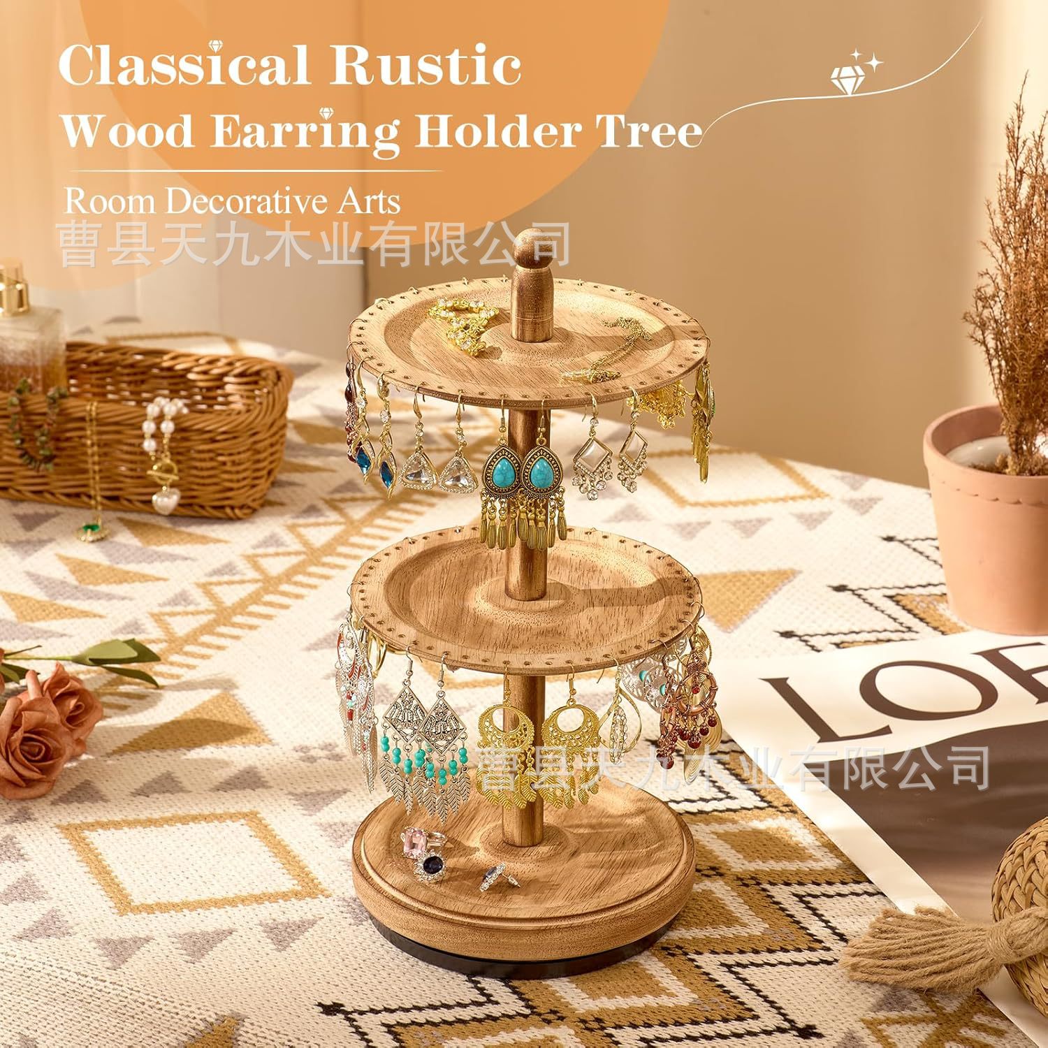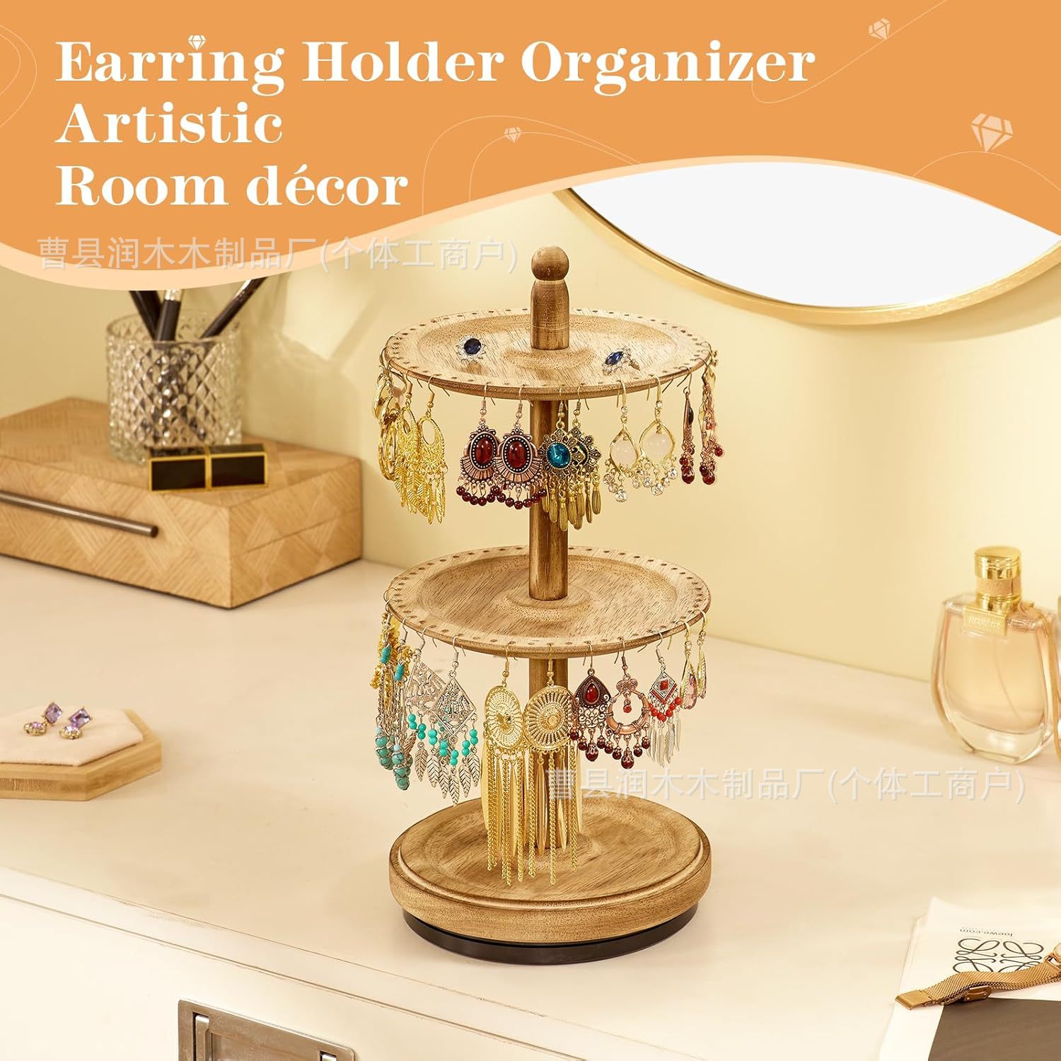 Cross-Border Jewelry Rack Store Jewelry Display Stand Three-Layer Rotatable Jewelry Rack Earrings Necklace Solid Wood Display Rack