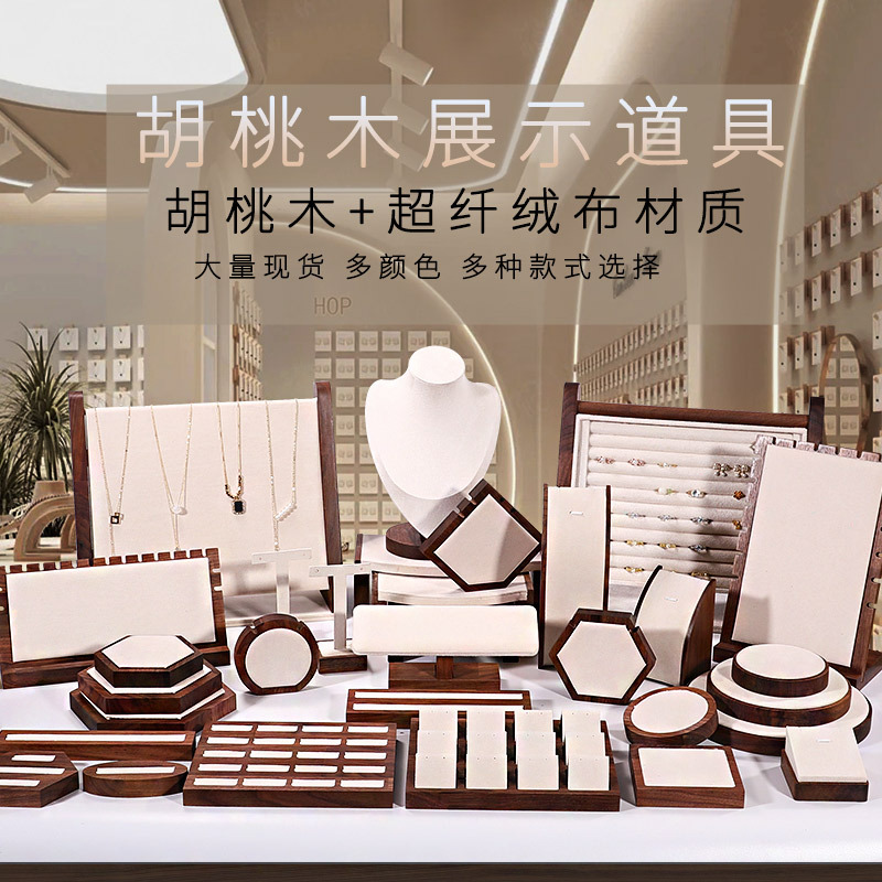 Walnut Jewelry Display Stand Ring Earrings Necklace Shelf Jewelry Counter Jewelry Rack Jade Jade Props Holder