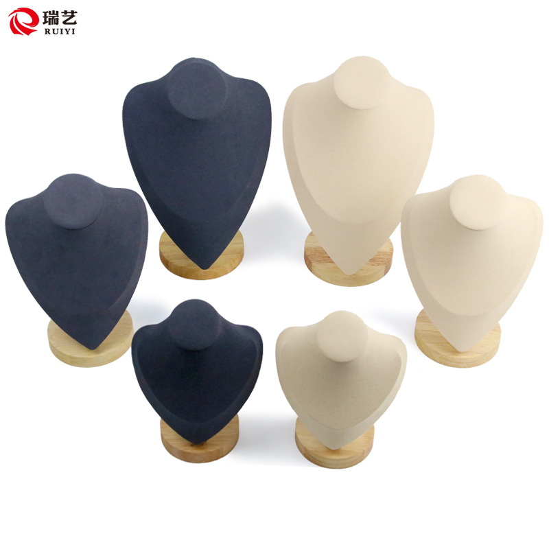 Feather Solid Wood Model Stand Necklace Display Stand Portrait Neck Necklace Jewelry Props Microfiber Jewelry Display Stand