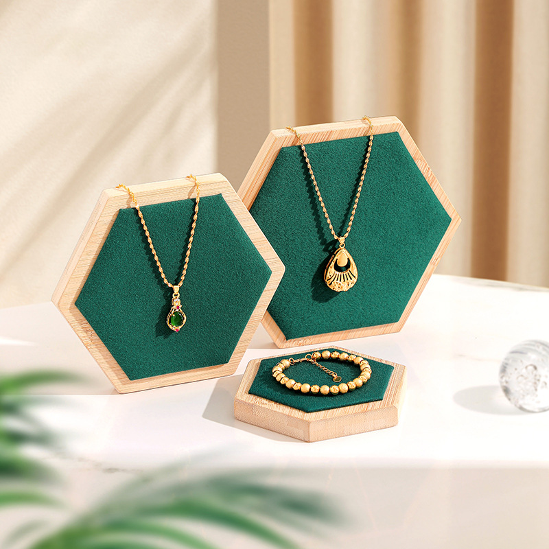 Bamboo jewelry display plate three-piece jewelry rack creative hexagonal design display props jewelry display stand