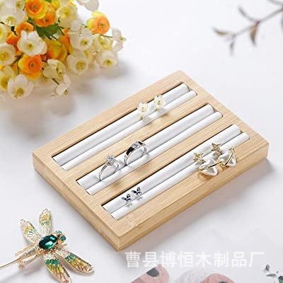 Bamboo and Wood Display Rack Ring Earrings Storage Tray Rectangular Jewelry Storage Rack Wooden Store Jewelry Display Tray