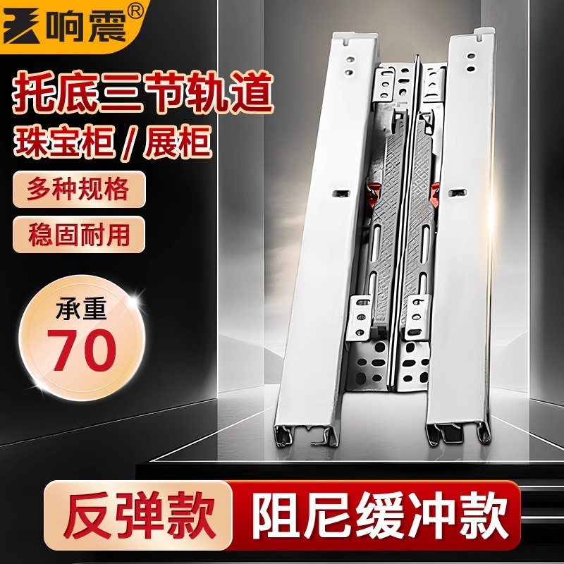 Bottom mounted slide rail jewelry cabinet tobacco and wine display cabinet glass display cabinet rail laminate damping three-section bottom drawer guide rail
