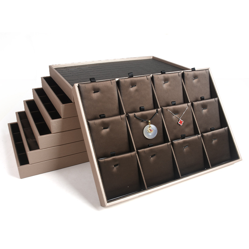 PU Brushed Leather Jewelry Tray Wen Play Plaid Storage Plate Ring Necklace Watch Jewelry Display Plate