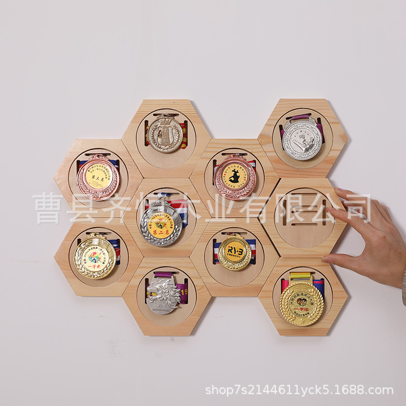 Cross-border hot-selling wooden honeycomb combination medal display rack hexagonal wooden medal rack children's entrance DIY