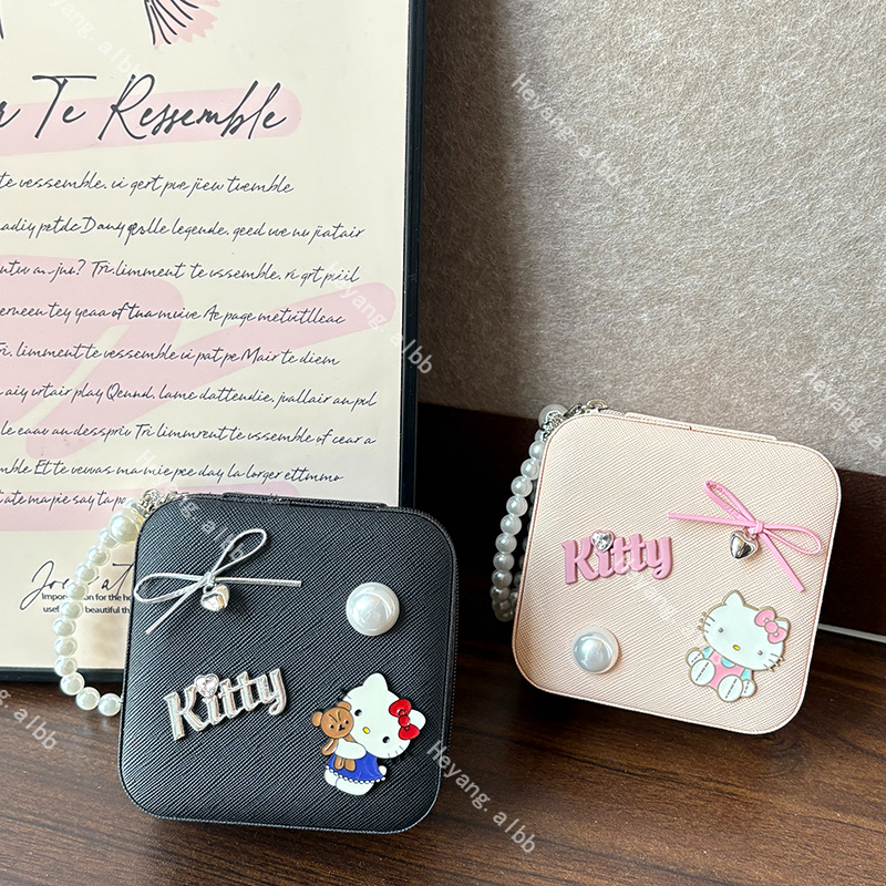 Fashion Cartoon High-end Cat Pearl Chain Cosmetic Box Elegant Sweet Cool Jewelry Storage Bag Hair Accessories Finishing