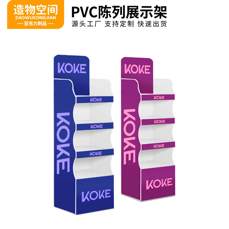 Customized Pvc Display Rack for Supermarkets, Food and Beverage Display Rack Made of Chevron Board, Multi-Layer Snack Product Floor-Standing Display Rack