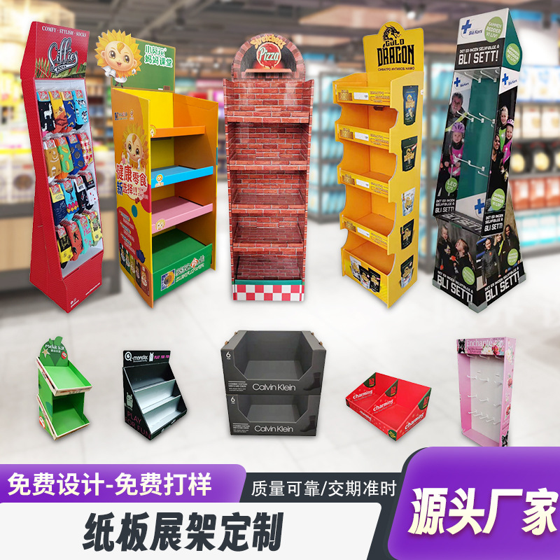 Foldable Paper Shelf Customization Yiwu Exhibition Paper Display Rack Supermarket Floor-Standing Toy Display Rack Multi-Layer