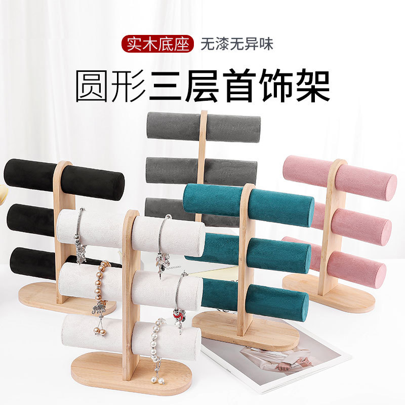 in stock bamboo three-layer bracelet display bracelet storage rack jewelry watch rack jewelry display rack manufacturers wholesale