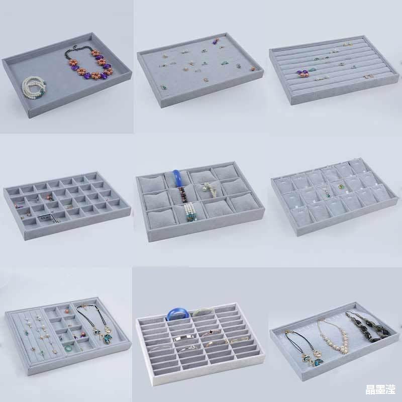 High-End Gray Flocked Cloth Jewelry Storage Tray Ring Earrings Earrings Necklace Jewelry Box Display Stand