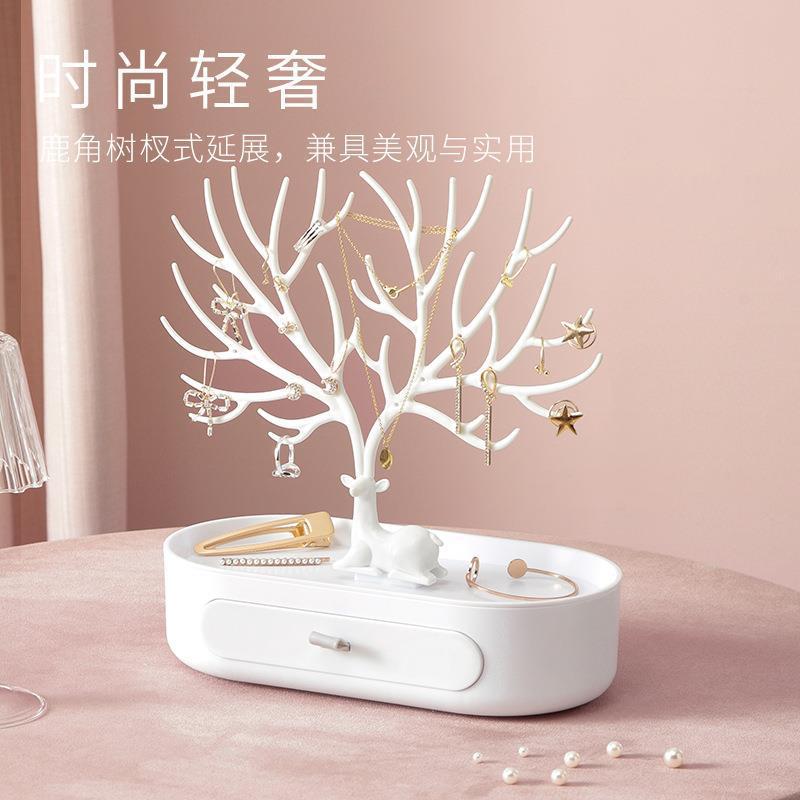 Creative Deer Jewelry Rack Desktop Antlers Tree-shaped Earrings Necklace Display Stand Key Desktop Storage Drawer Jewelry