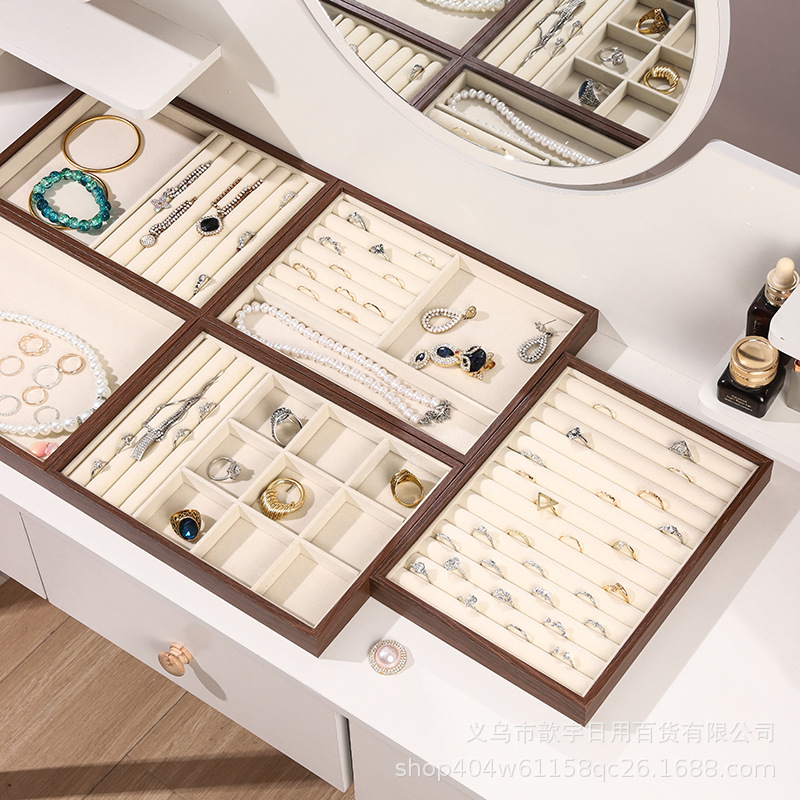 Ice velvet jewelry Tray storage box necklace ring pendant bracelet earrings large capacity jewelry display plate